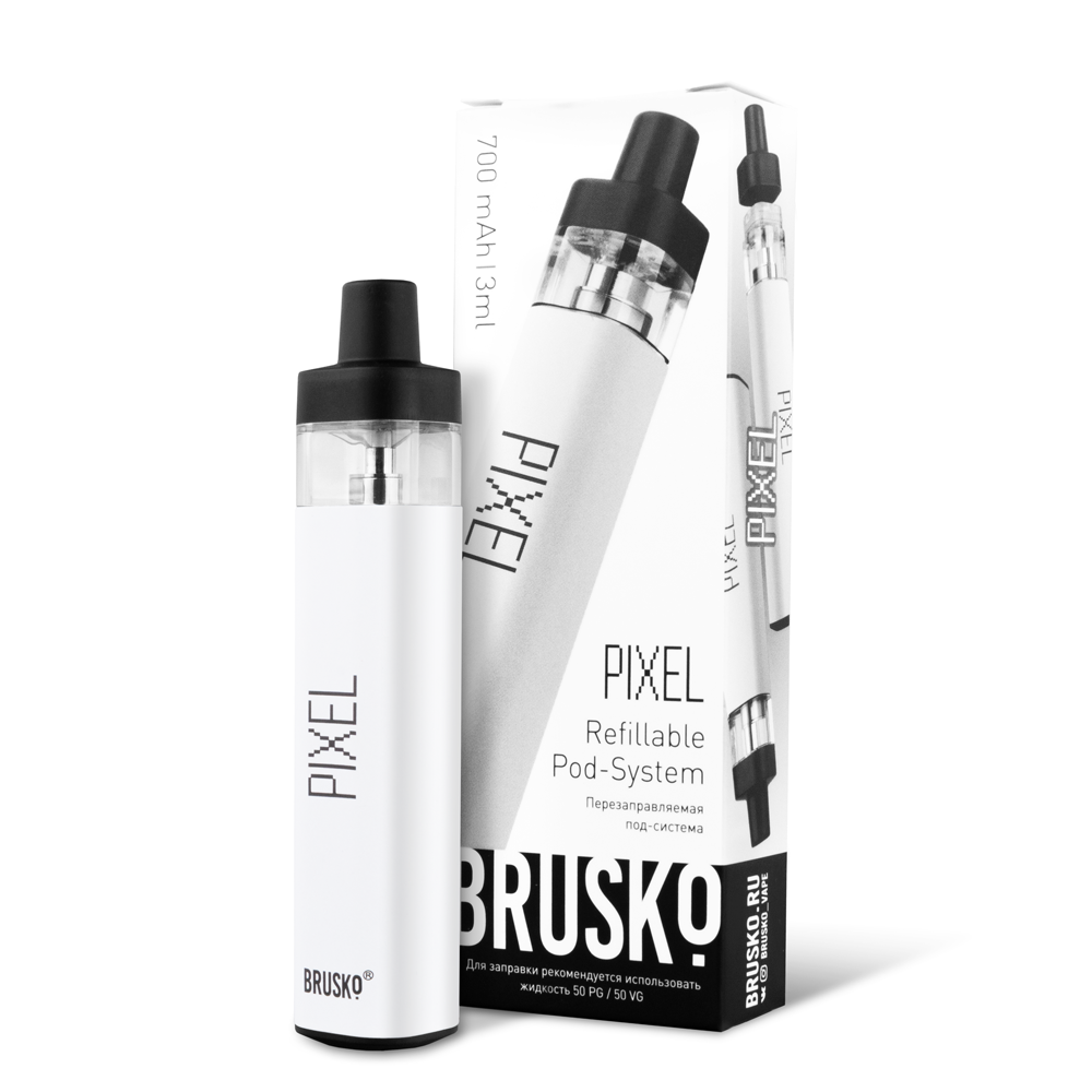 Перезаправляемая Под-Система Бруско Пиксель (Brusko Pixel) 700 mah, Белый - купить в Рославле